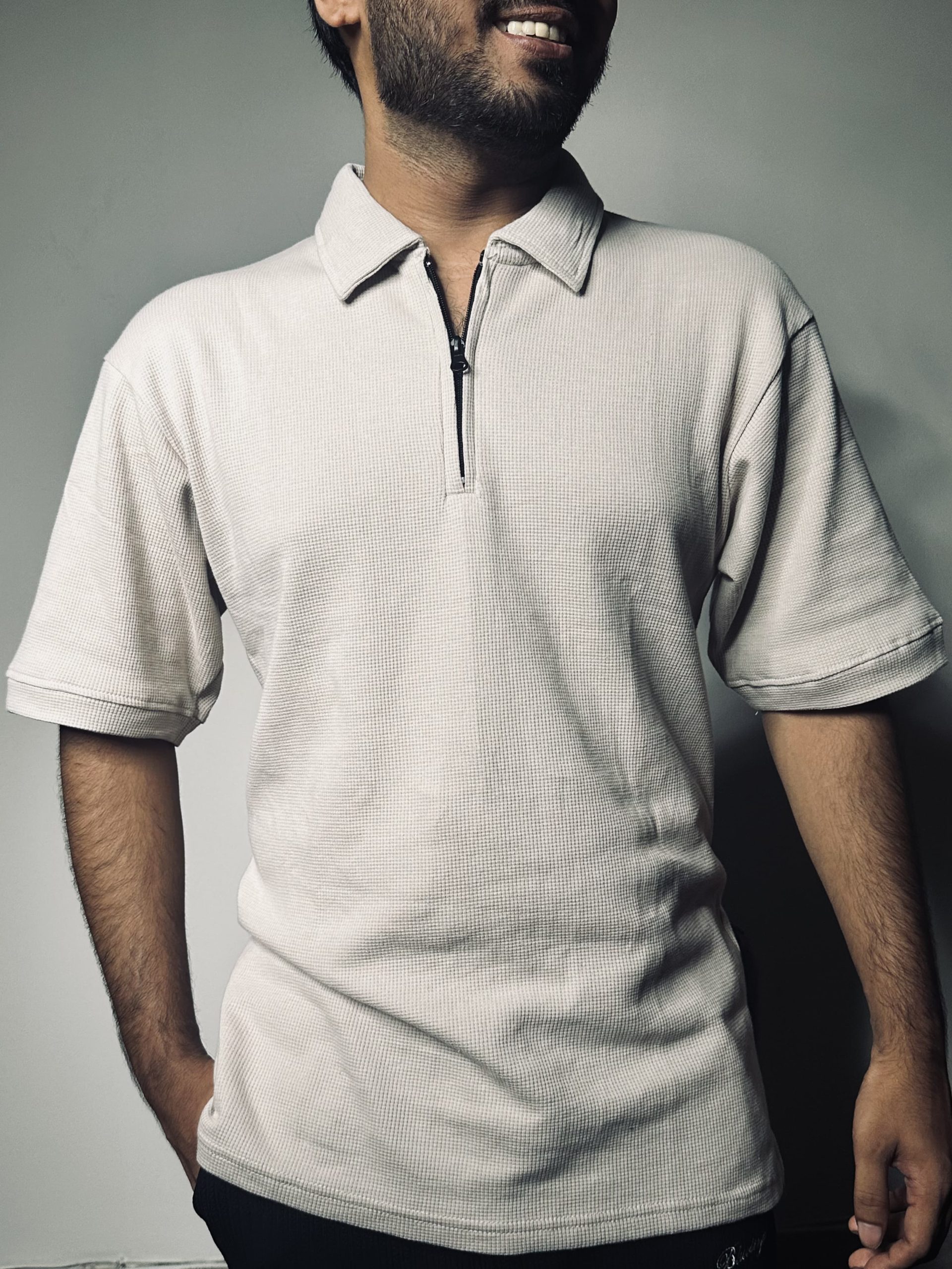 Be the first to review “Semi Drop Zipper Polo | Beige”
